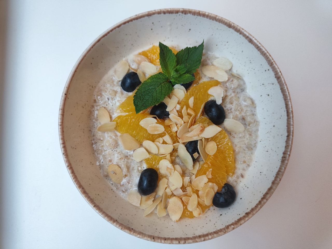 Овсяная каша — это не только полезно, а еще и вкусно. У каши нежная текстура и насыщенный вкус, который дополнили для вас ягодами голубики, апельсином и минадлем.